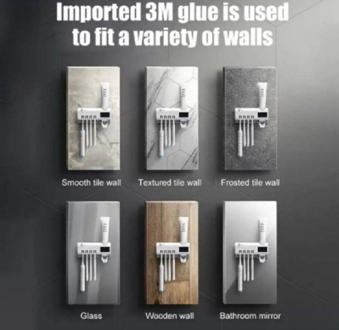 Solar UV Light Ultraviolet Toothbrush Sterilizer Automatic Toothpaste Dispenser Wall Mount with 4 Toothbrush Holder
