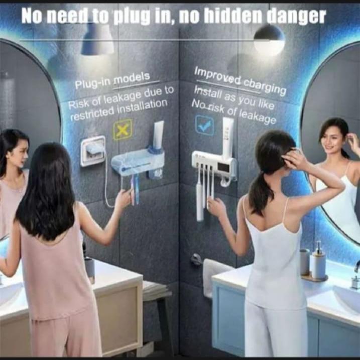 Keep your toothbrushes clean and protected with our Solar UV Light Ultraviolet Toothbrush Sterilizer. This automatic toothpaste dispenser and wall mount also includes a holder for up to 4 toothbrushes. The built-in UV light technology kills germs and bacteria, ensuring a healthier and more hygienic brushing experience. Simply place your toothbrush inside, and let the solar-powered UV light do the rest.